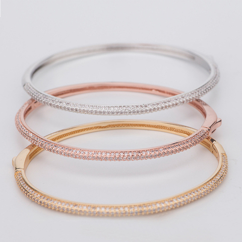 Drop Shipping Full 3A Zircon Stone Ladies Jewelry Bangle Fashion Simple Circle Diamond Bracelet & Bangle for Women